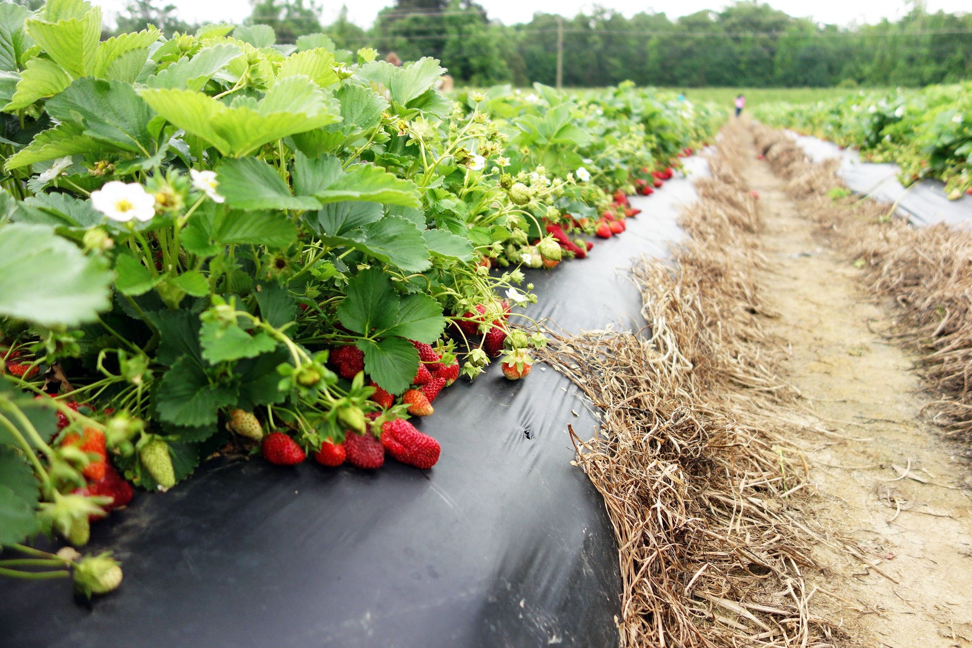 Mulch: a hardwood mulch, no grass, straw or leaves. This protects the top 2" of soil from drying out that can kill the strawberry quickly in the beginning growing process.
