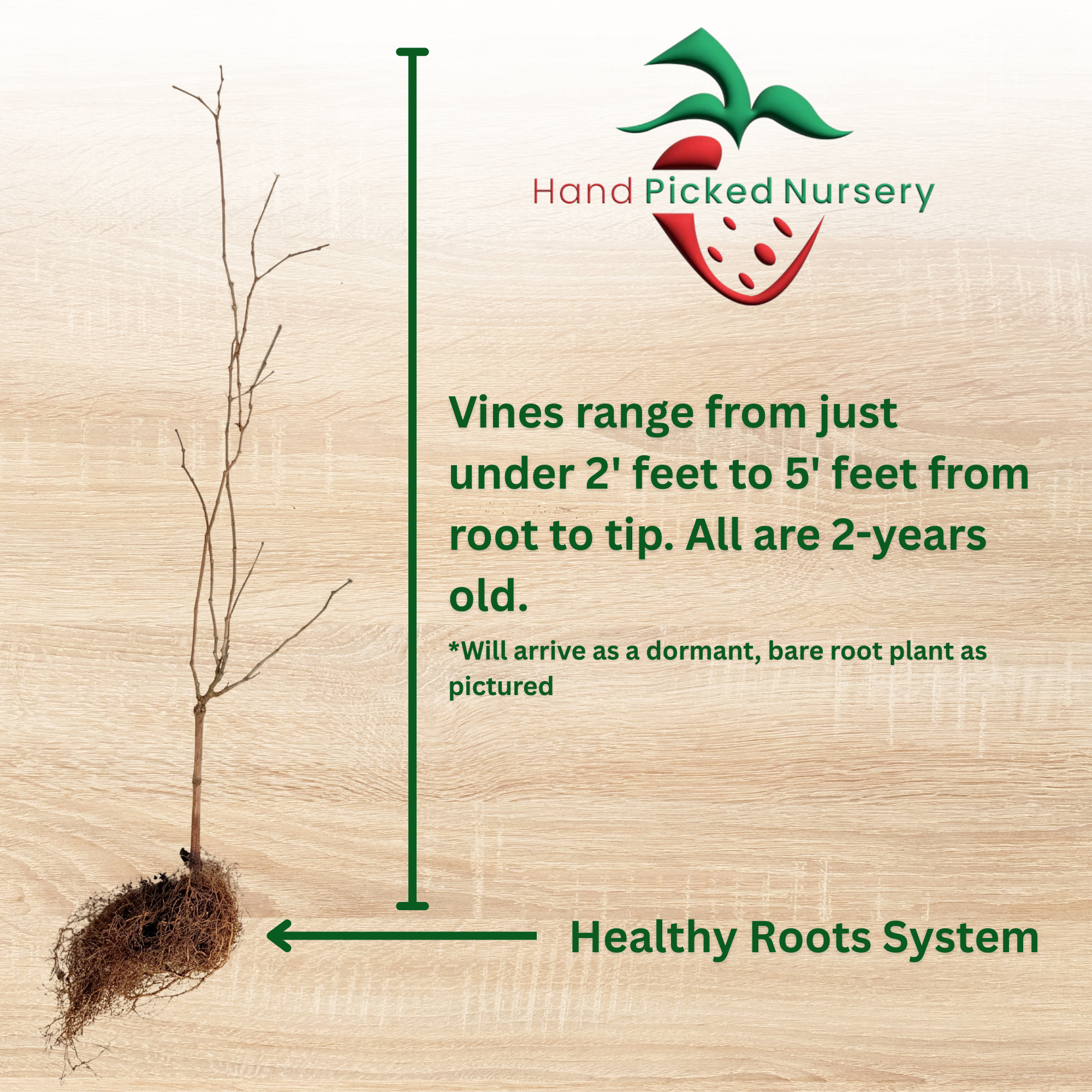 • Plant Size: Bare Root Vine (Size Varies Seasonally)