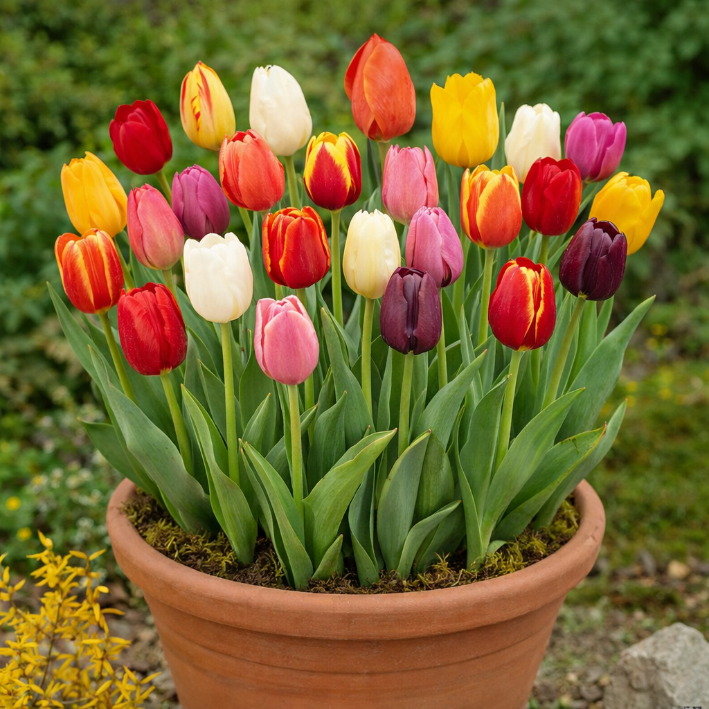 Tulip Triumph ‘Triumph Mix’ | Premium 12/+ cm Bulbs | Vibrant Mid-Spring Color Blend | Free Fertilizer Boost | Hand Picked Nursery